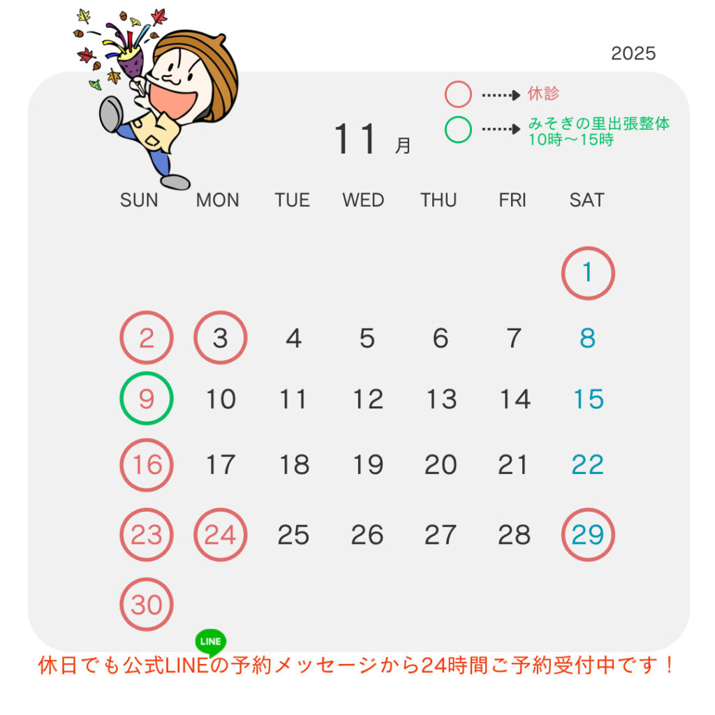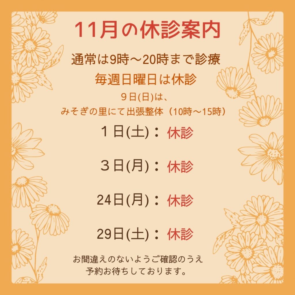 11月は毎週日曜日を休診とさせていただきます。