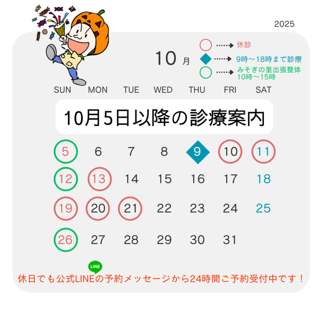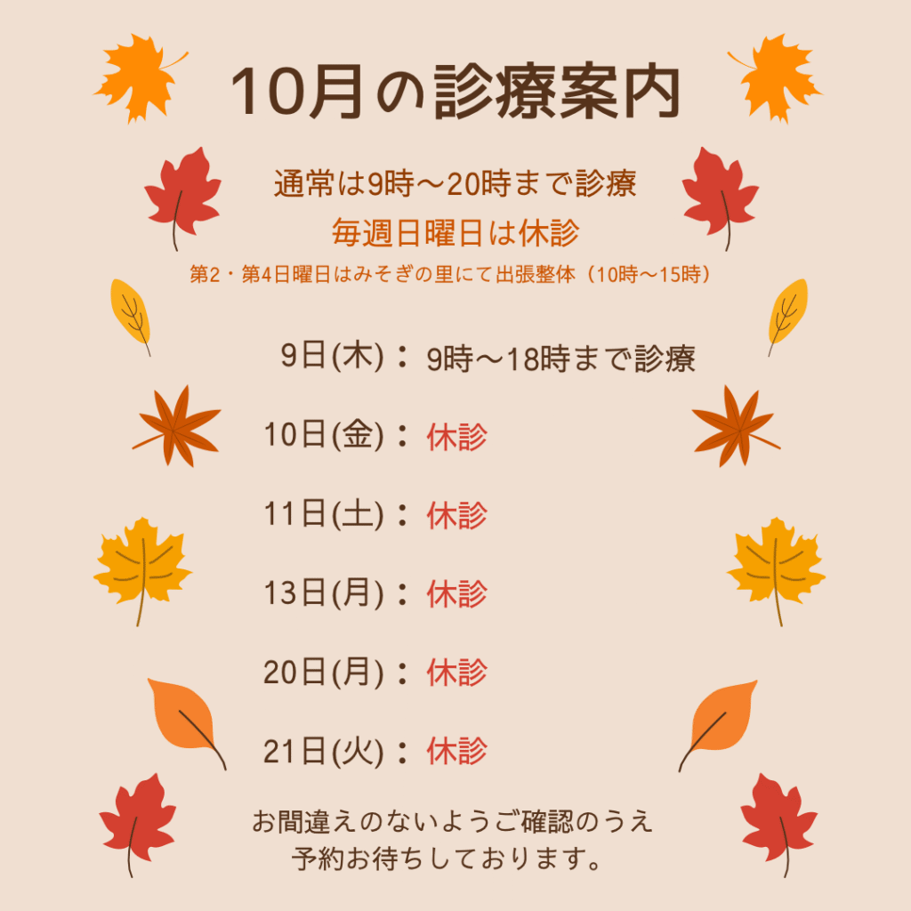 10月は毎週日曜日を休診とさせていただきます。