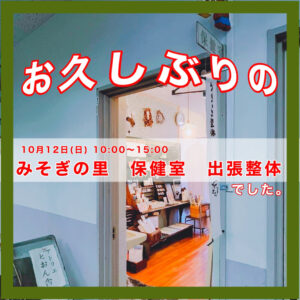 第2・第4日曜日は『みそぎの里(旧御祓小学校)』保健室にて、10時〜15時まで出張整体を行います。