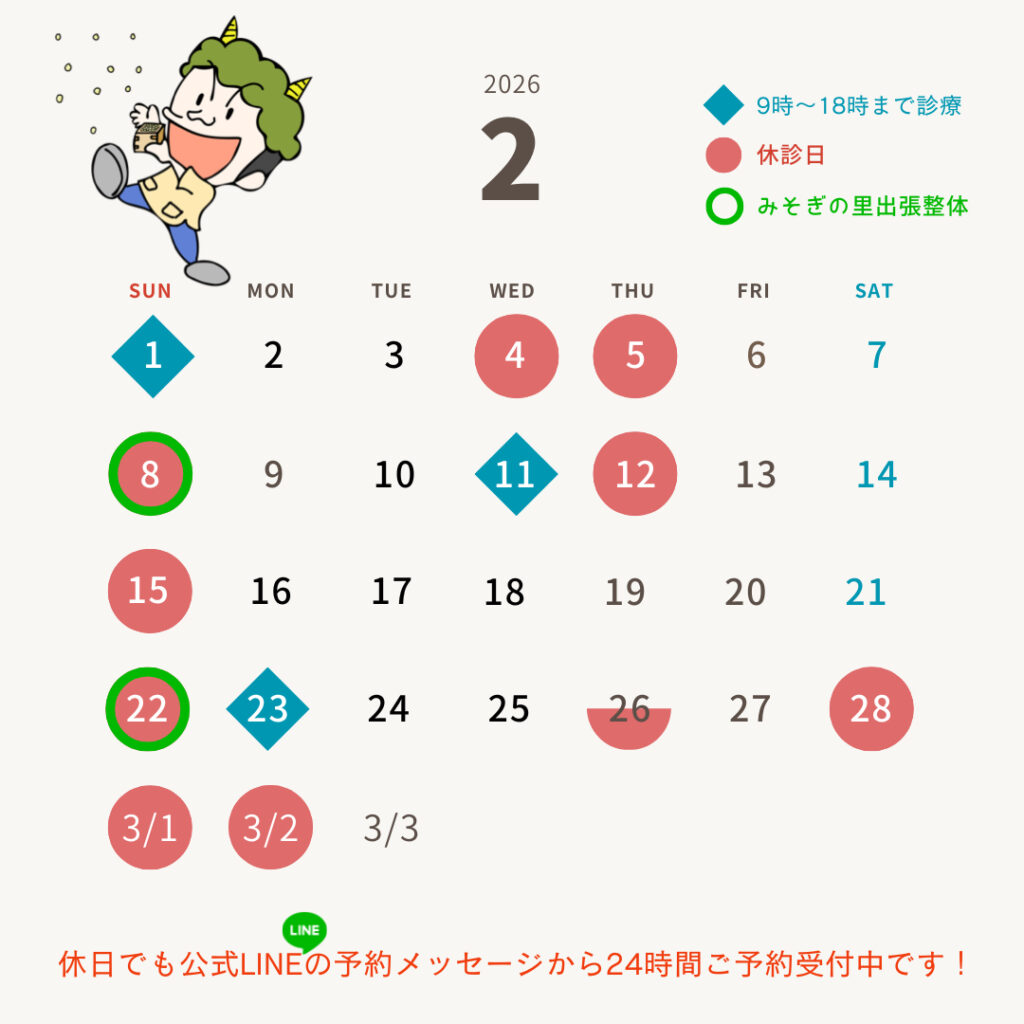 8日(日)と22日(日)は、みそぎの里保健室出張整体です。(10時〜15時)