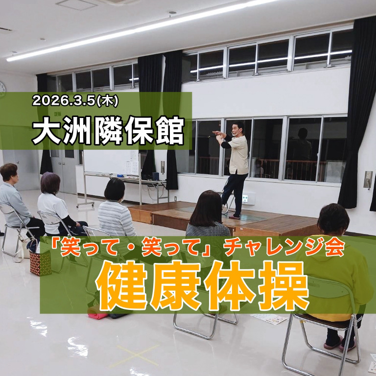 大洲隣保館にて「笑って・笑って」チャレンジ会の健康体操教室へ行ってきました。