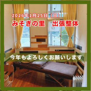毎月第2・第4日曜日にみそぎの里(旧御祓小学校)1階保健室にて「出張整体」を行います。